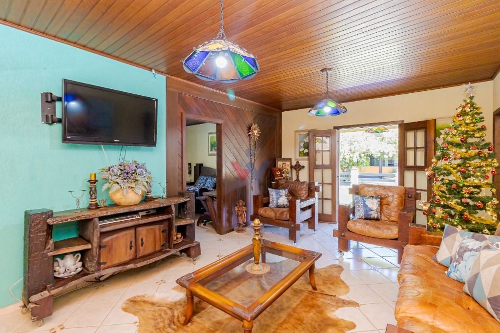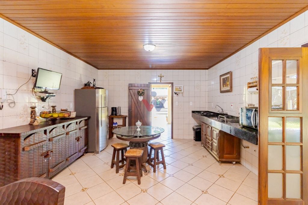 Com 480m², contendo sala ampla, cozinha, 4 banheiros, 4 quartos (sendo 1 suíte). 1 churrasqueira com área de serviço. Portas externas duplas e postas internas em madeira imbuia, coberturas da varanda com madeira itauba.