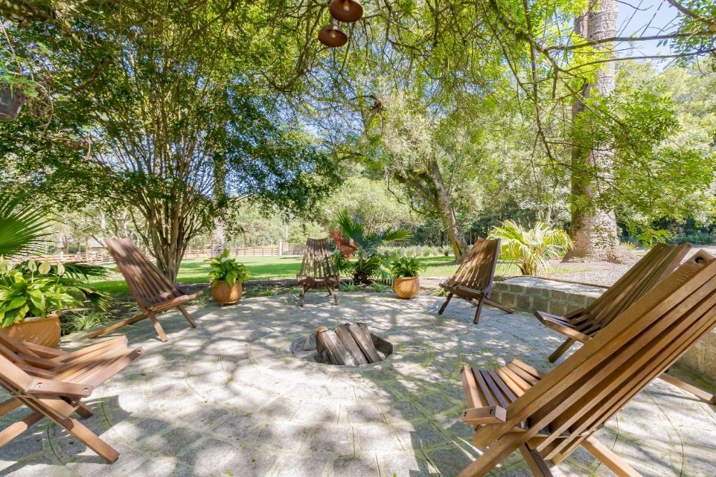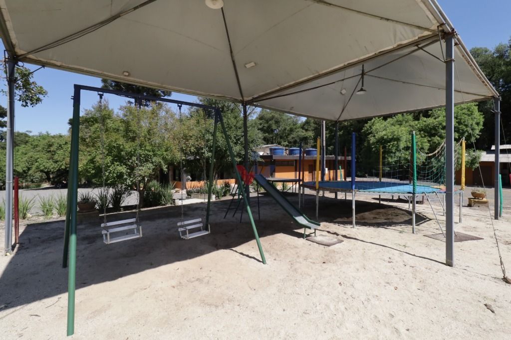 2 pergolados de madeira e iluminados, 1 lareira ao ar livre, 1 caixa d'água 6 mil litros, 1 barrão estruturado semi acabado com 200m², 1 playground coberto, 2 tanques de peixes, 1 poço artesiano com 120 mts de profundidade, 1 poço semi-artesiano com 8 mts de profundidade, iluminação subterrânea e refletores em LED, alimentação hidráulica subterrânea, 2 portões eletrônicos de correr e cercas frontais em madeira itauba. Laterais e fundos cercados com arrame.