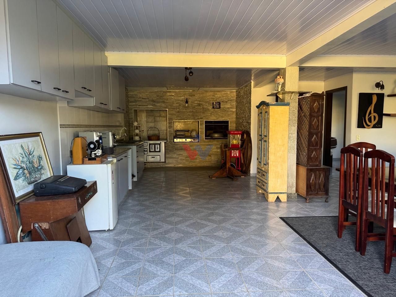 Amplo salão de festas com churrasqueira