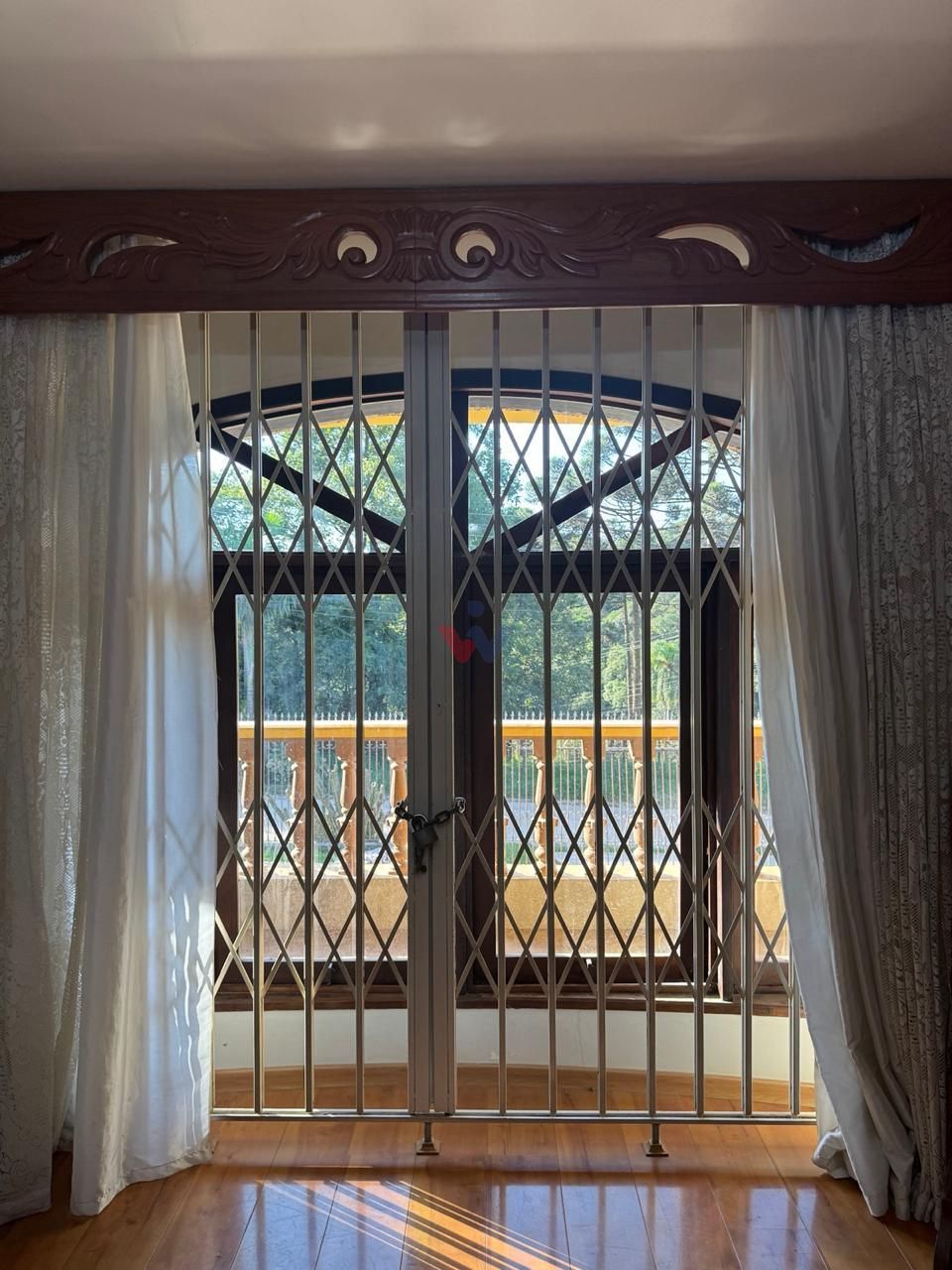 Detalhes decorativos elegantes, como bandôs de cortinas e acabamentos que reforçam o estilo clássico da residência