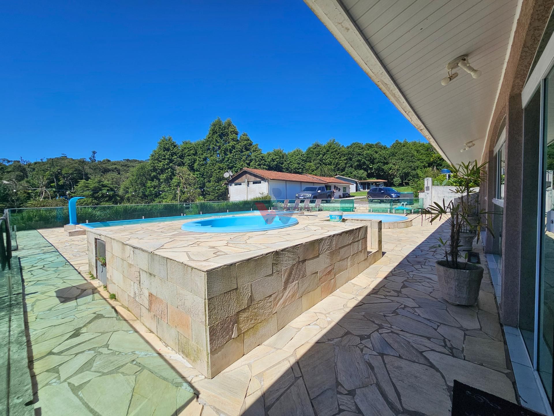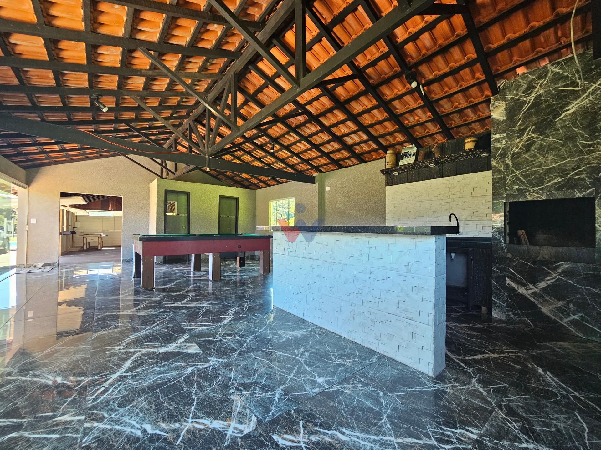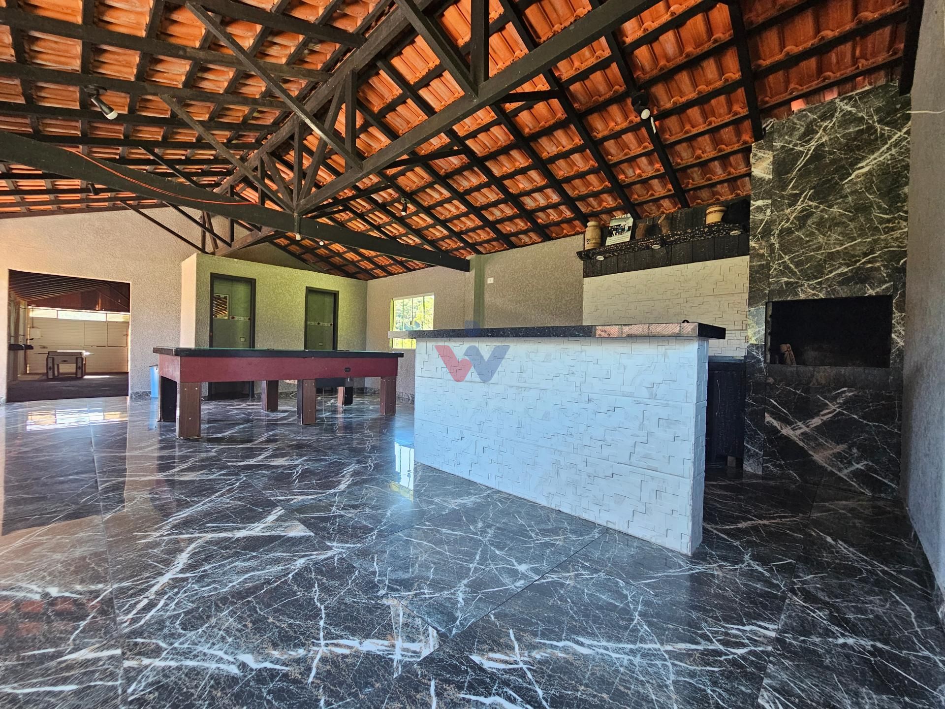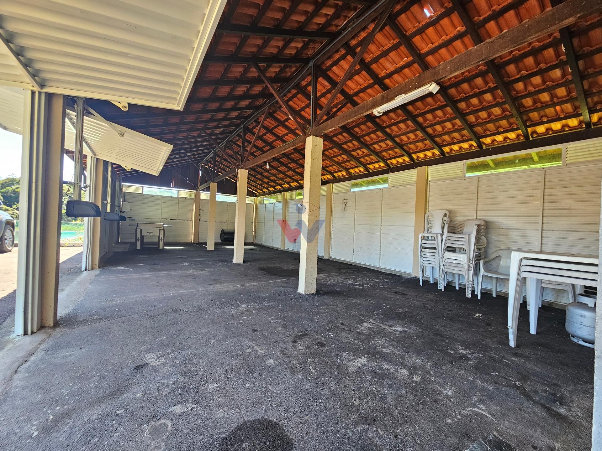Logo na entrada, à direita, há garagem coberta e fechada com portão basculante para até 4 carros. No mesmo espaço encontra-se um salão de jogos, equipado com mesa de sinuca, churrasqueiras e 02 banheiros. A propriedade conta ainda com depósito para materiais e ferramentas, canil e baia para cavalos, oferecendo excelente estrutura para quem aprecia vida no campo.