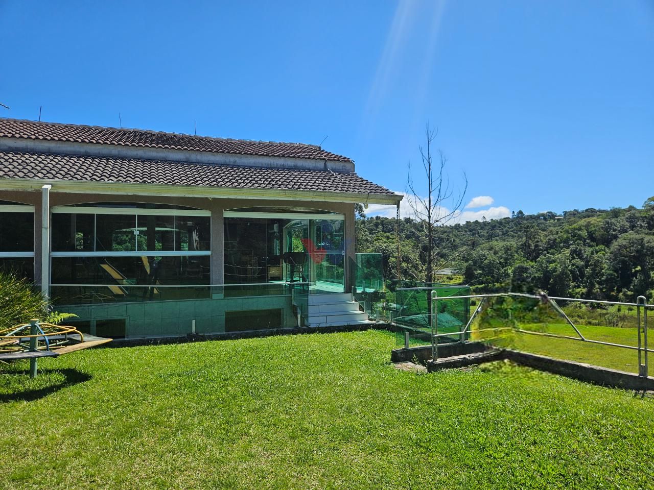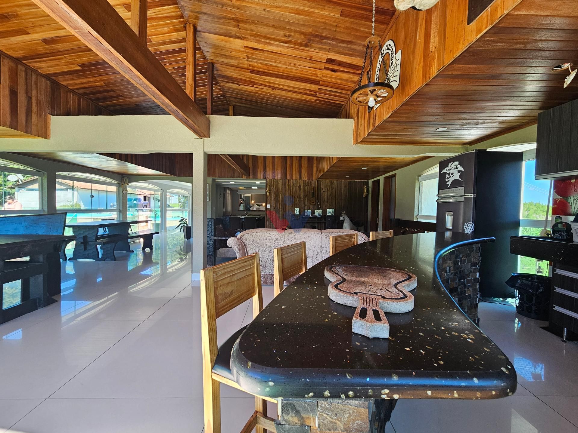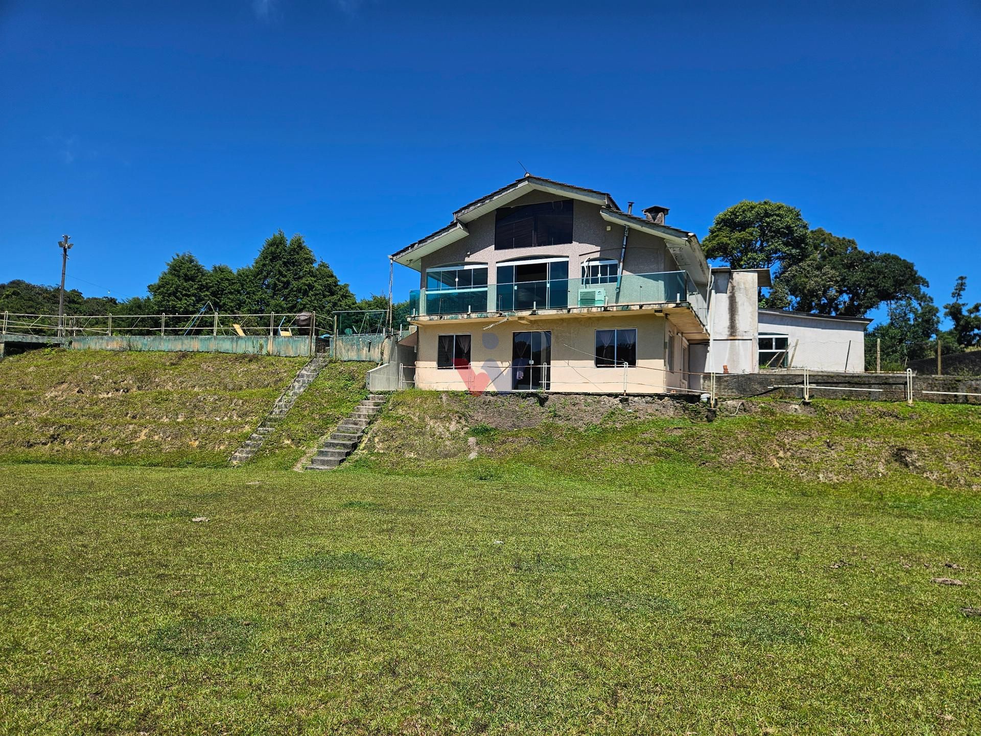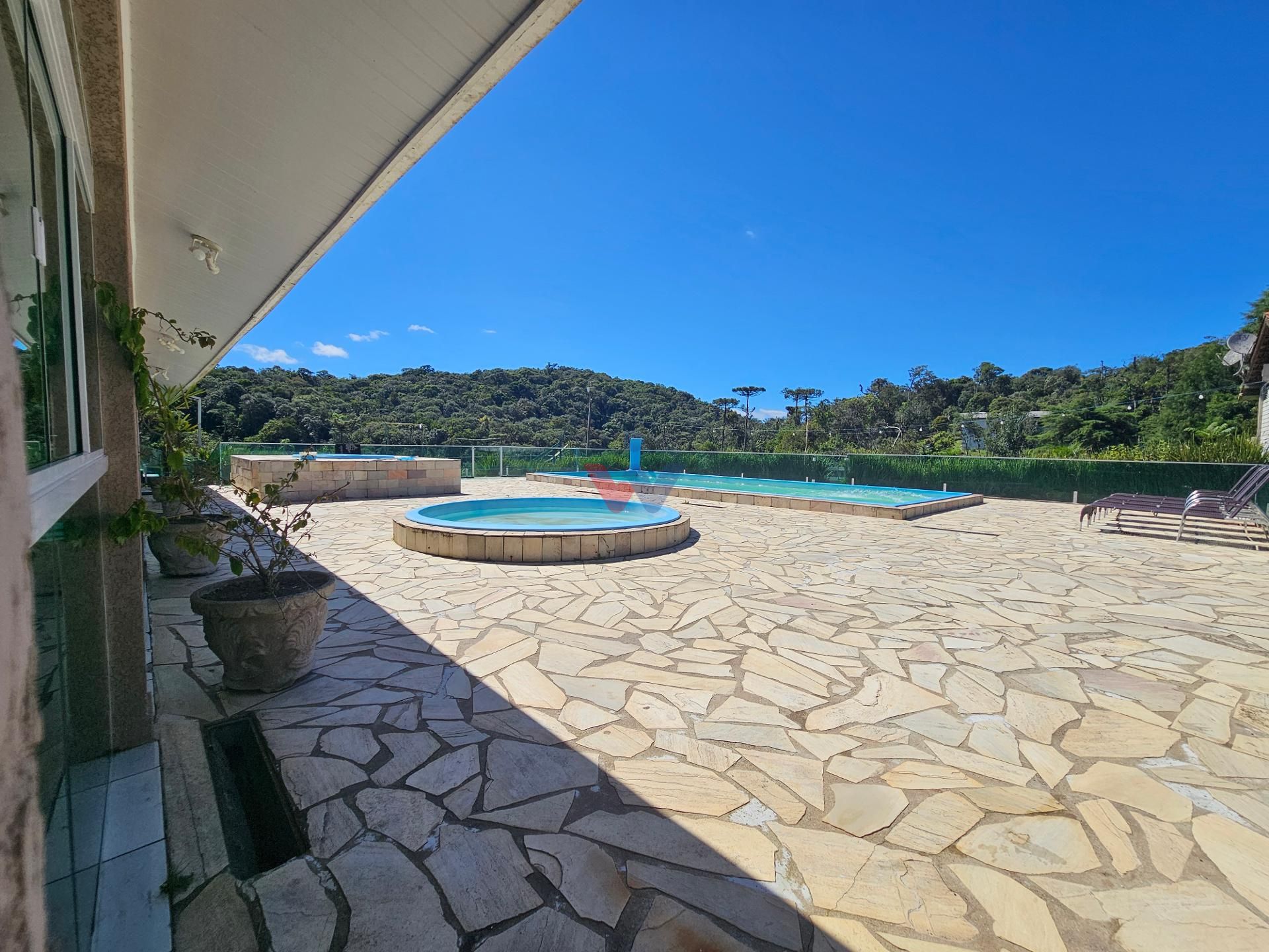 Logo na entrada, à direita, há garagem coberta e fechada com portão basculante para até 4 carros. No mesmo espaço encontra-se um salão de jogos, equipado com mesa de sinuca, churrasqueiras e 02 banheiros. A propriedade conta ainda com depósito para materiais e ferramentas, canil e baia para cavalos, oferecendo excelente estrutura para quem aprecia vida no campo.