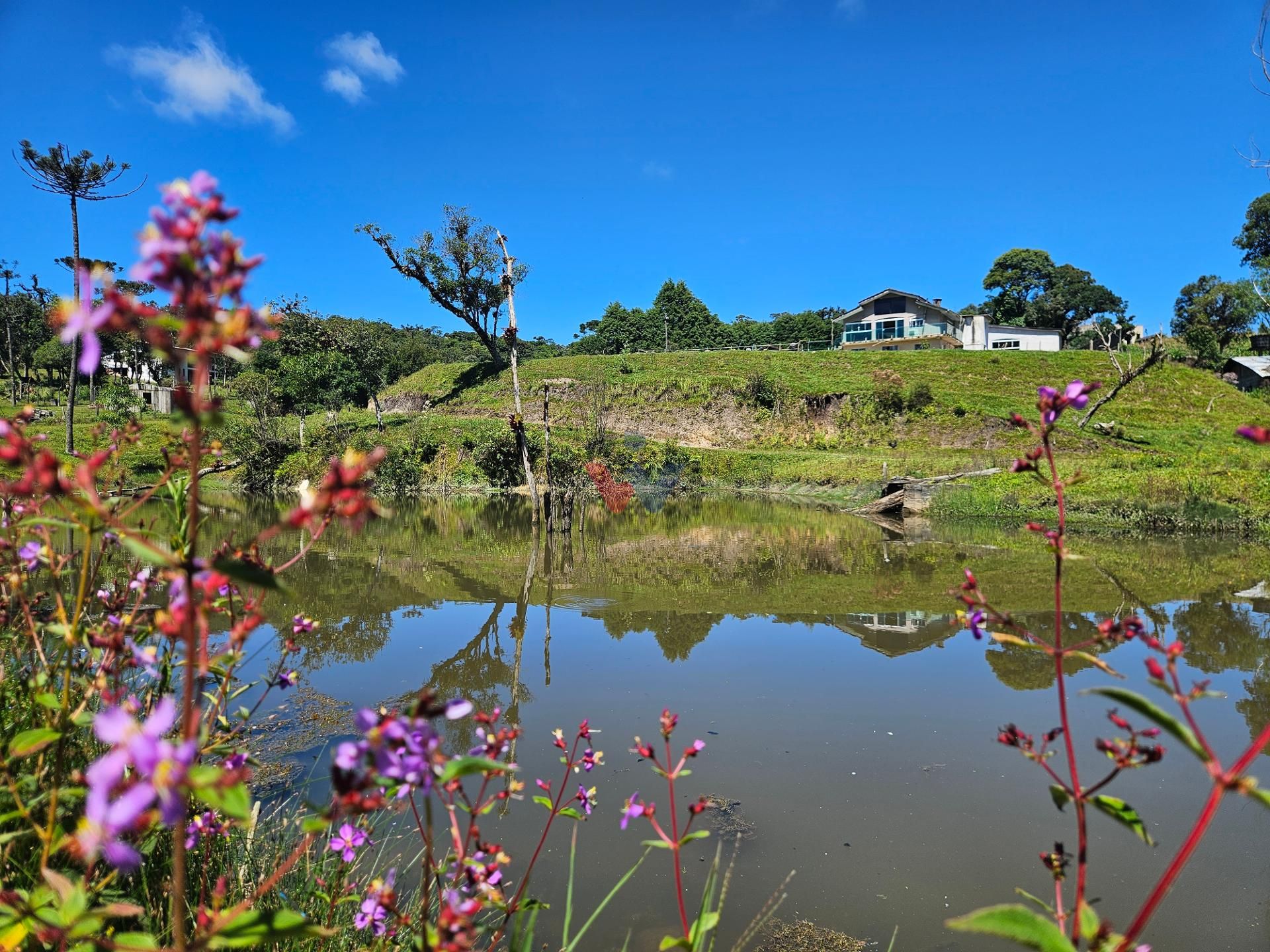 A propriedade é rica em água, formando diversos lagos naturais, o que torna a paisagem ainda mais especial e perfeita para momentos de contemplação e contato direto com a natureza.
