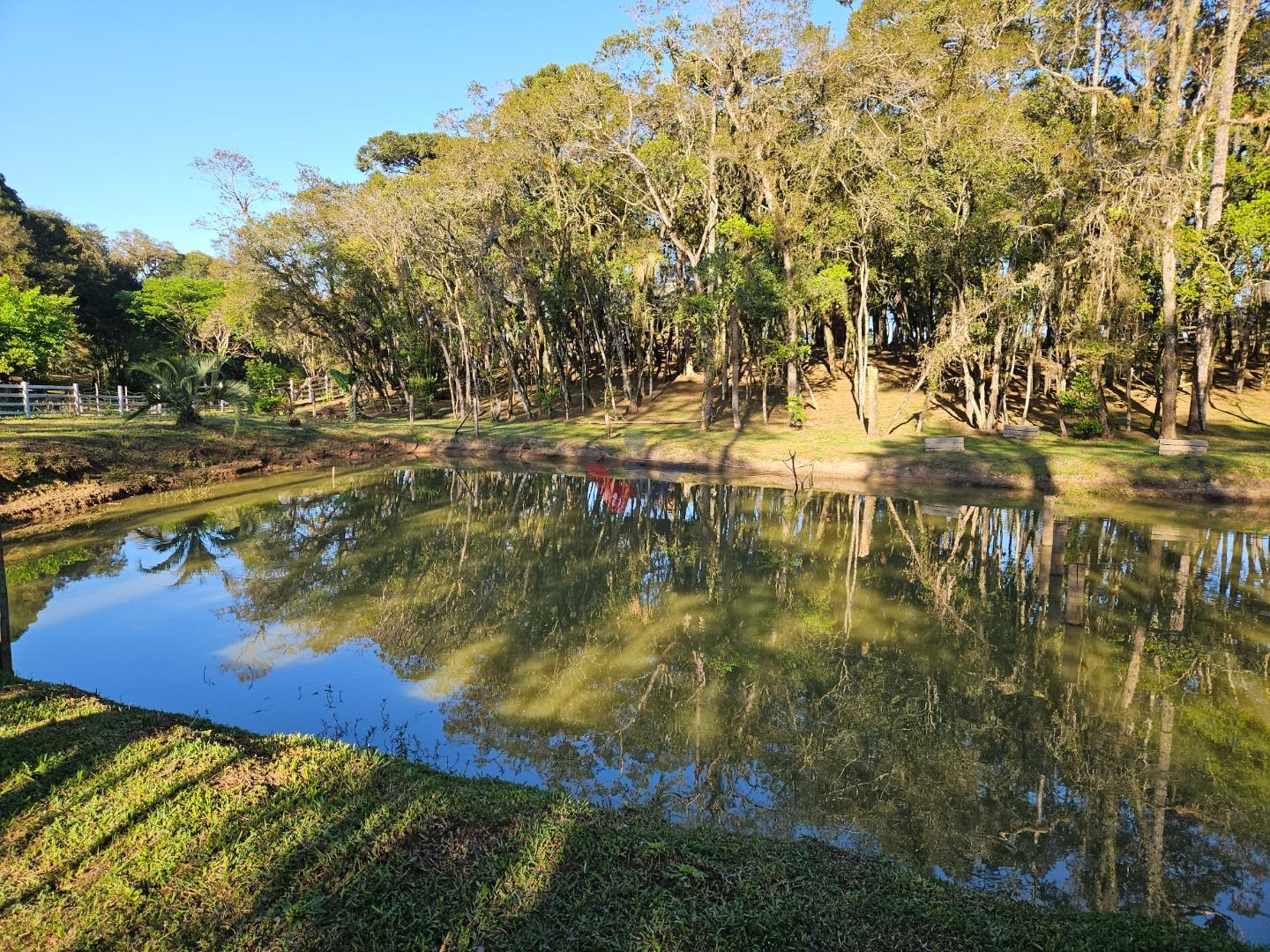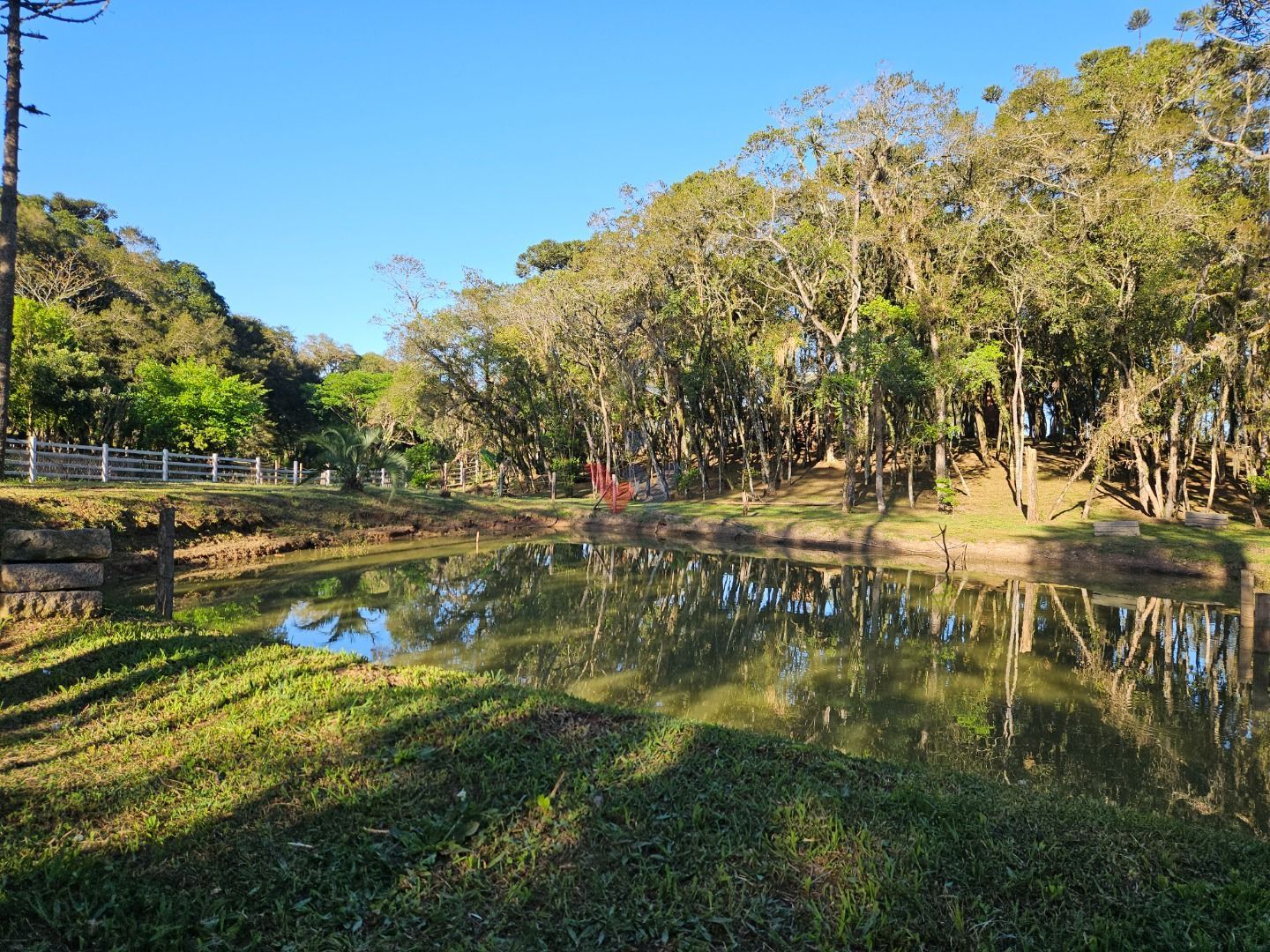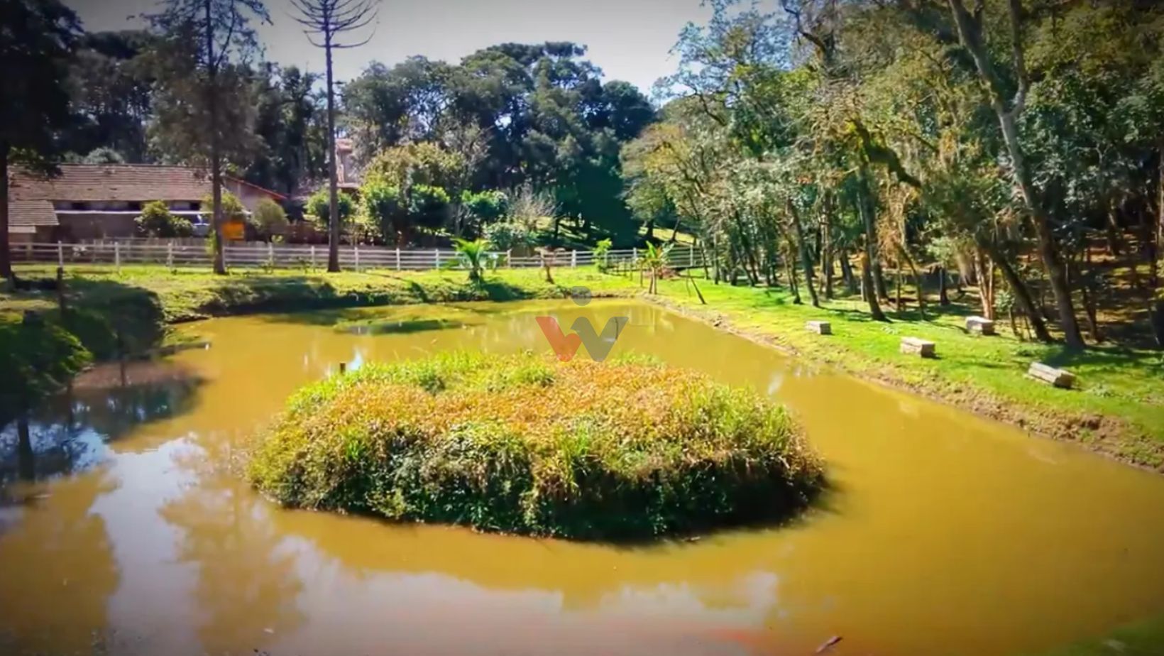 Com 7.755 m², a chácara possui um lindo bosque de árvores frondosas, perfeito para caminhadas, redes de descanso e momentos tranquilos ao som dos pássaros. Um belíssimo lago com ilha central acrescenta ainda mais charme e serenidade ao local.