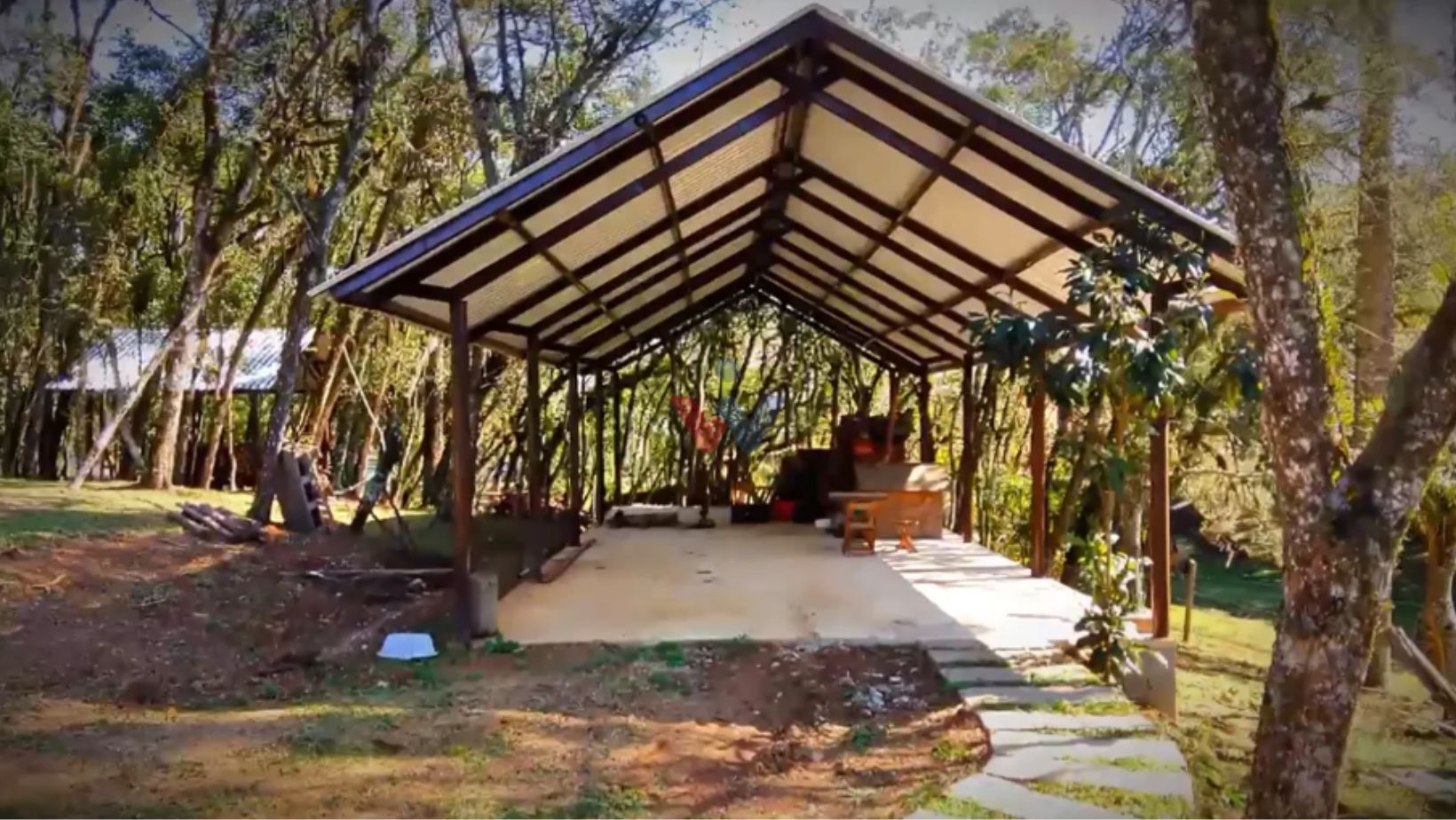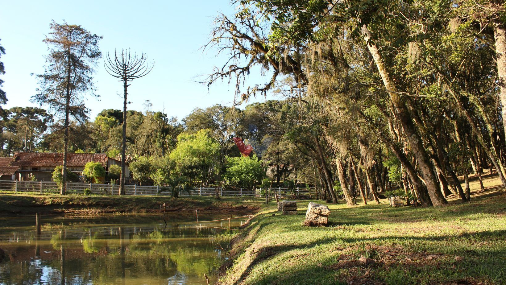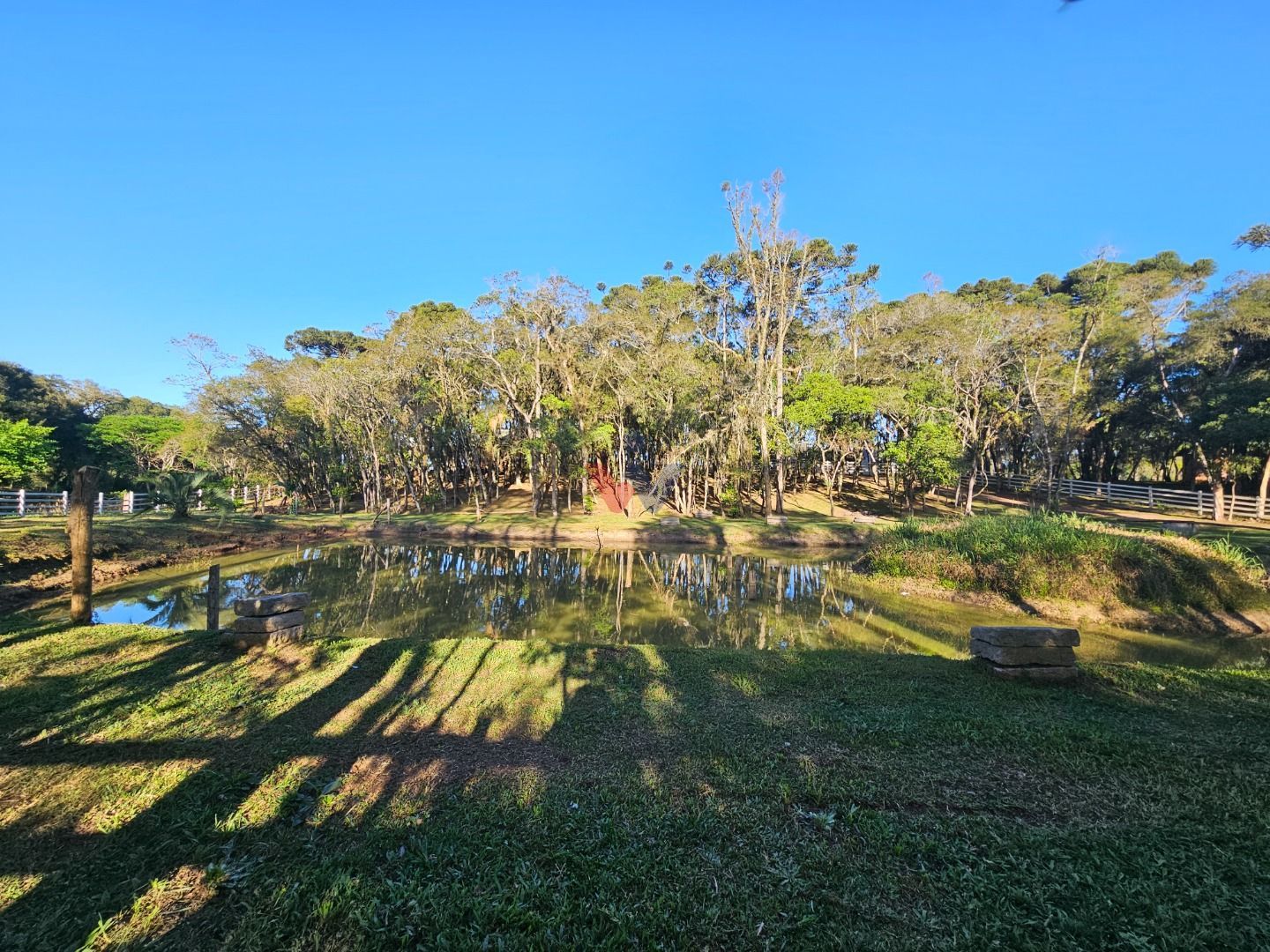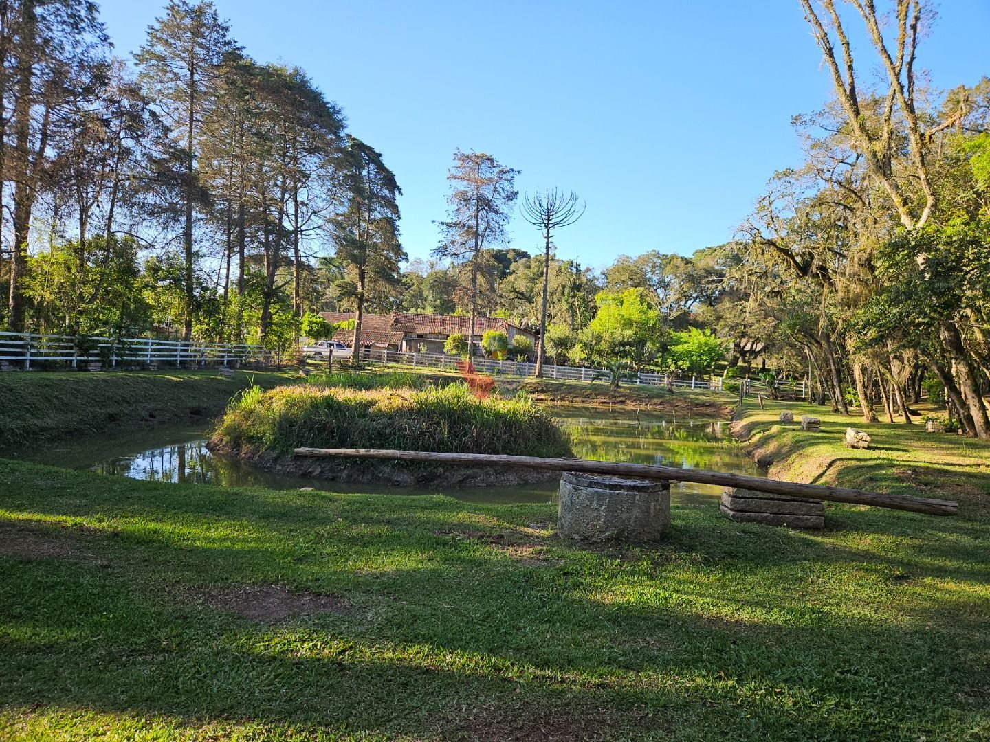 Com 7.755 m², a chácara possui um lindo bosque de árvores frondosas, perfeito para caminhadas, redes de descanso e momentos tranquilos ao som dos pássaros. Um belíssimo lago com ilha central acrescenta ainda mais charme e serenidade ao local.
