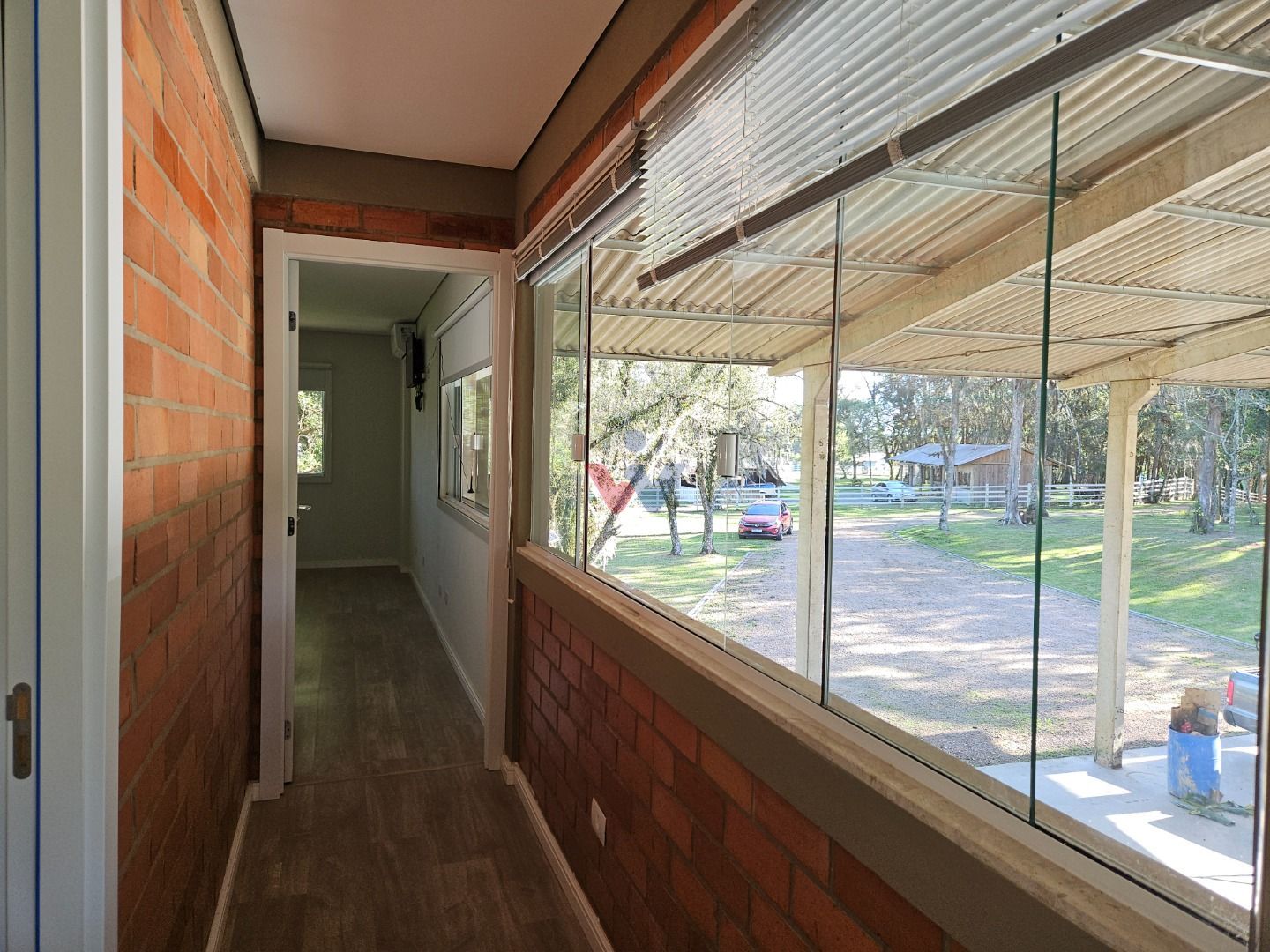 A área construída é de aproximadamente 600 m², ideal para moradia, com sala e cozinha integradas em conceito aberto, cozinha planejada com fogão a lenha e banheiro social no piso térreo. No piso superior, acessível por uma escada em mármore, encontram-se 03 quartos espaçosos, sendo 01 suíte.