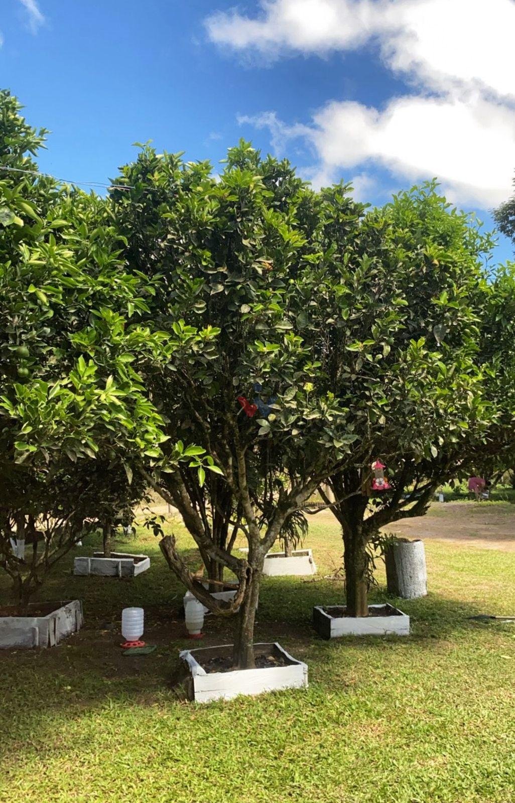 Pomar grande com diversas árvores frutíferas já produzindo;