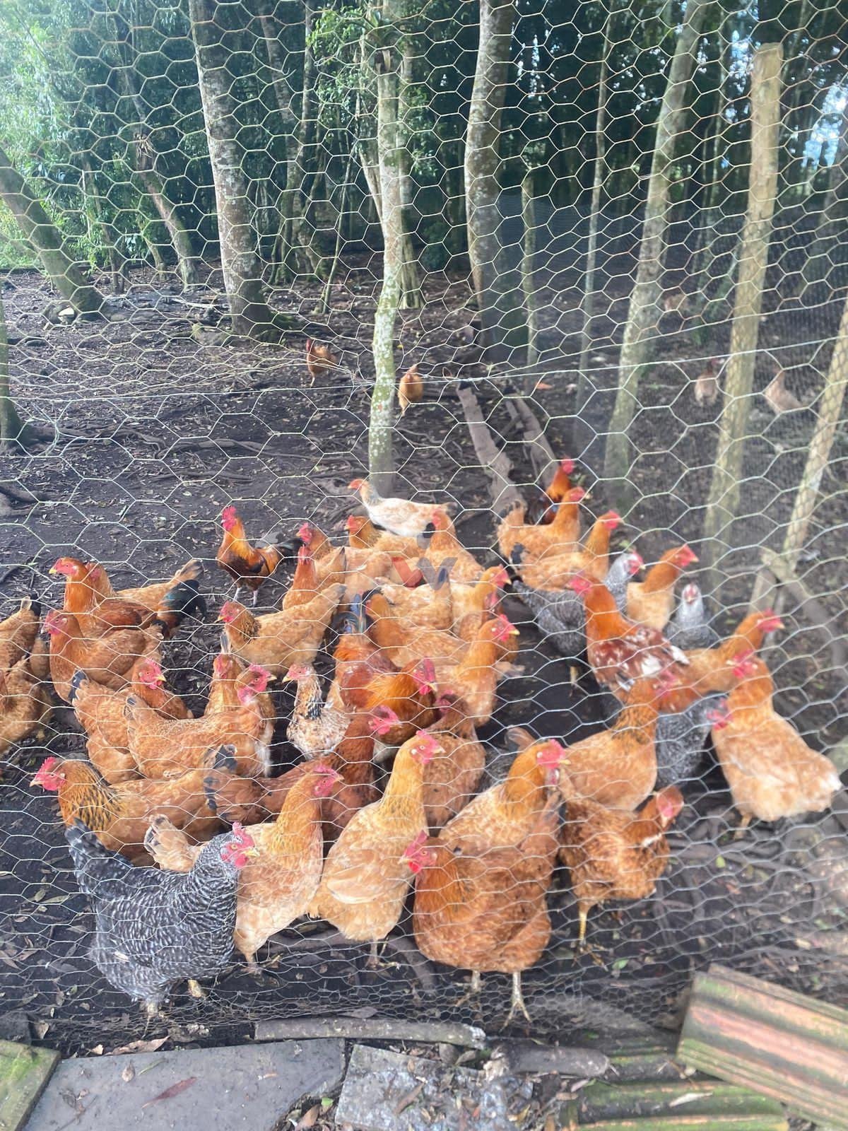 Cerca de 50 galinhas (galos, poedeiras e ganizes)