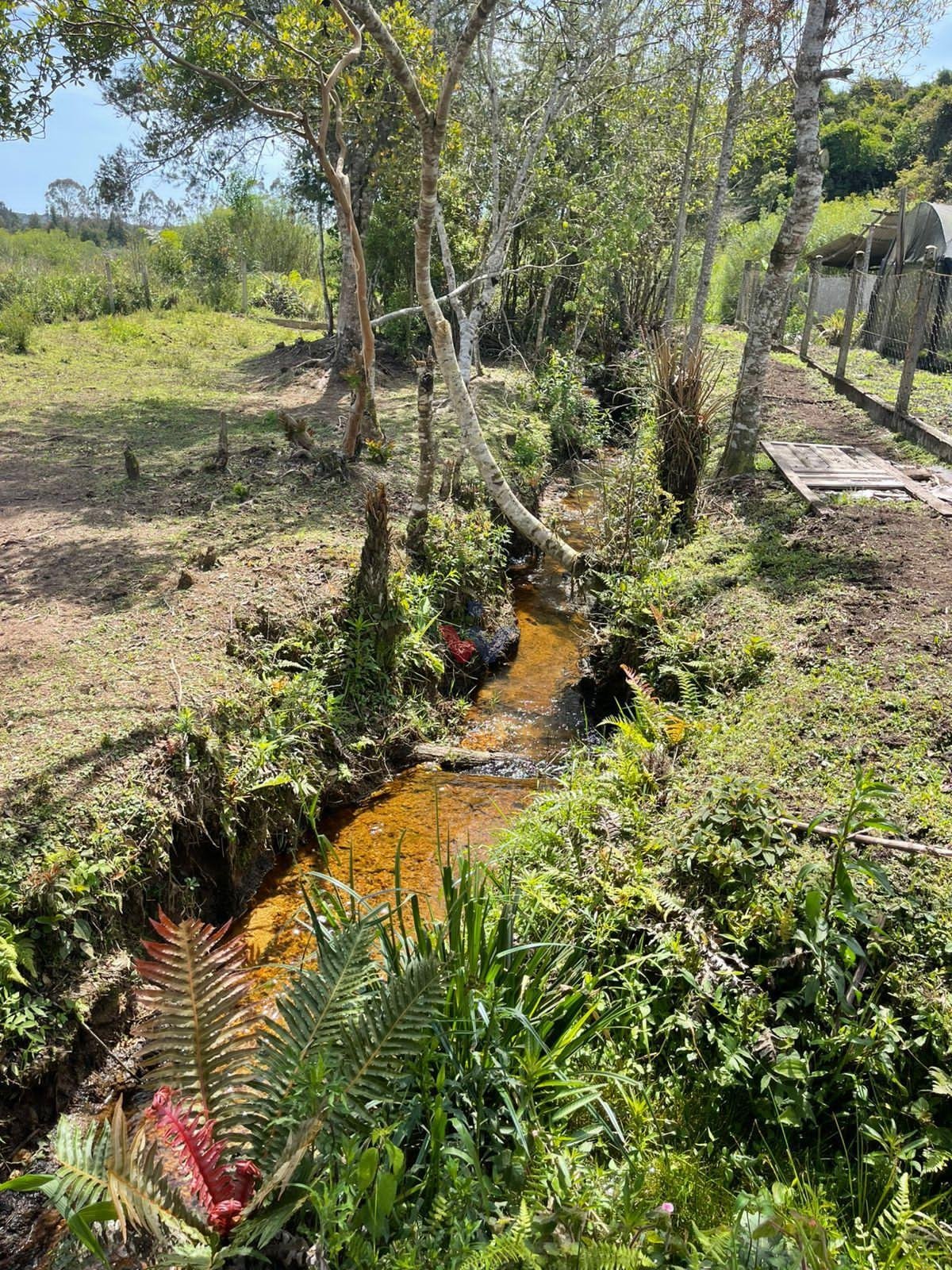 Riacho com água corrente dentro da propriedade;