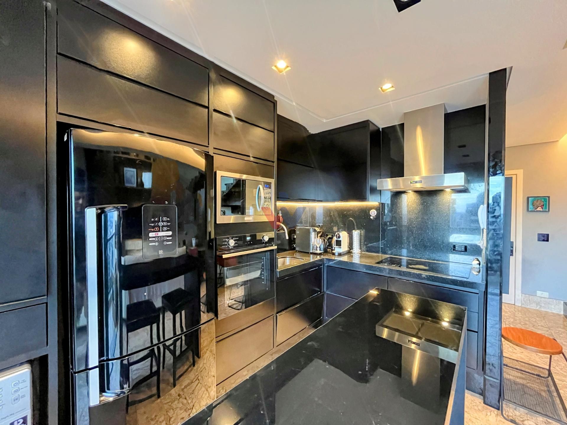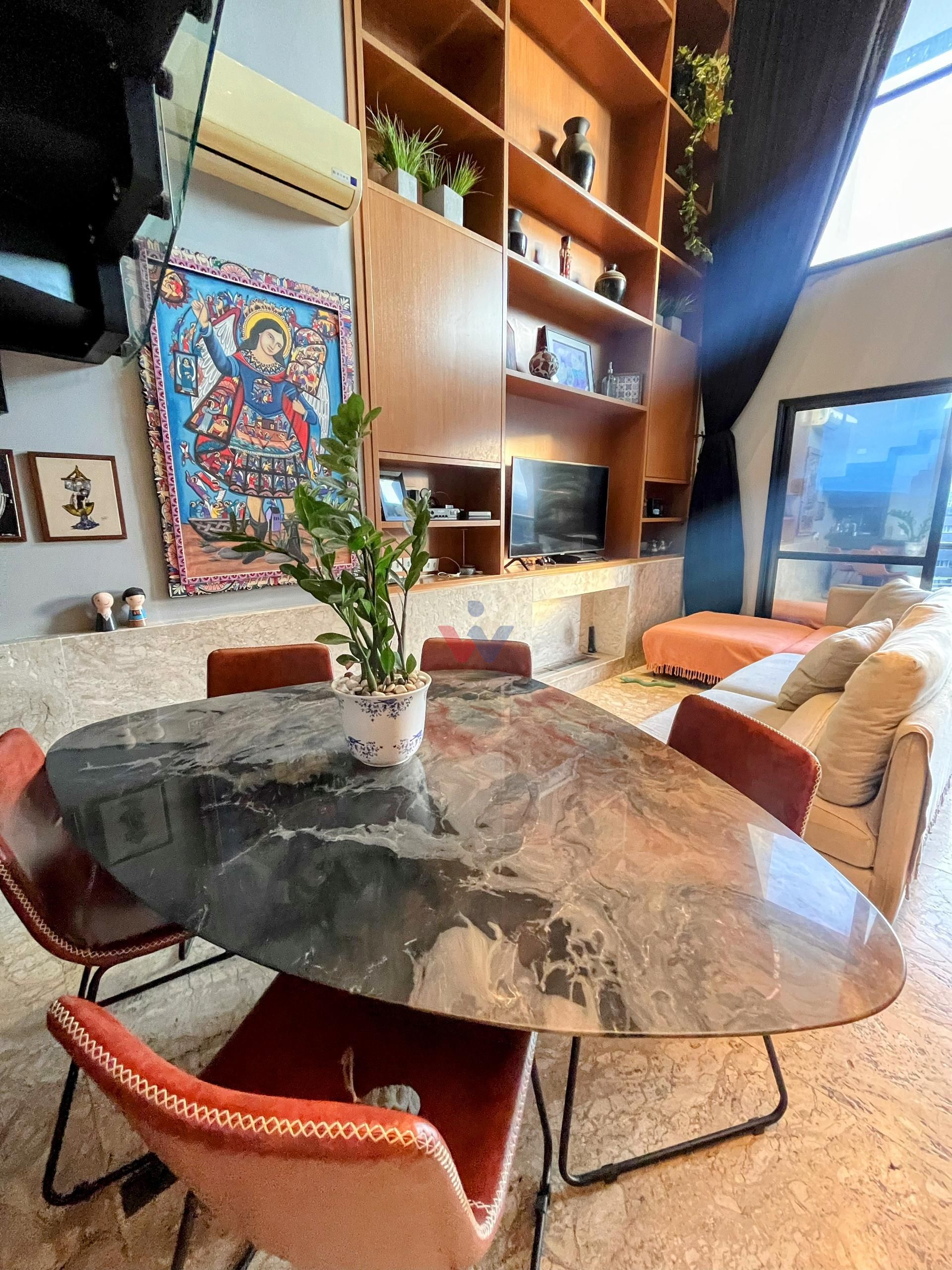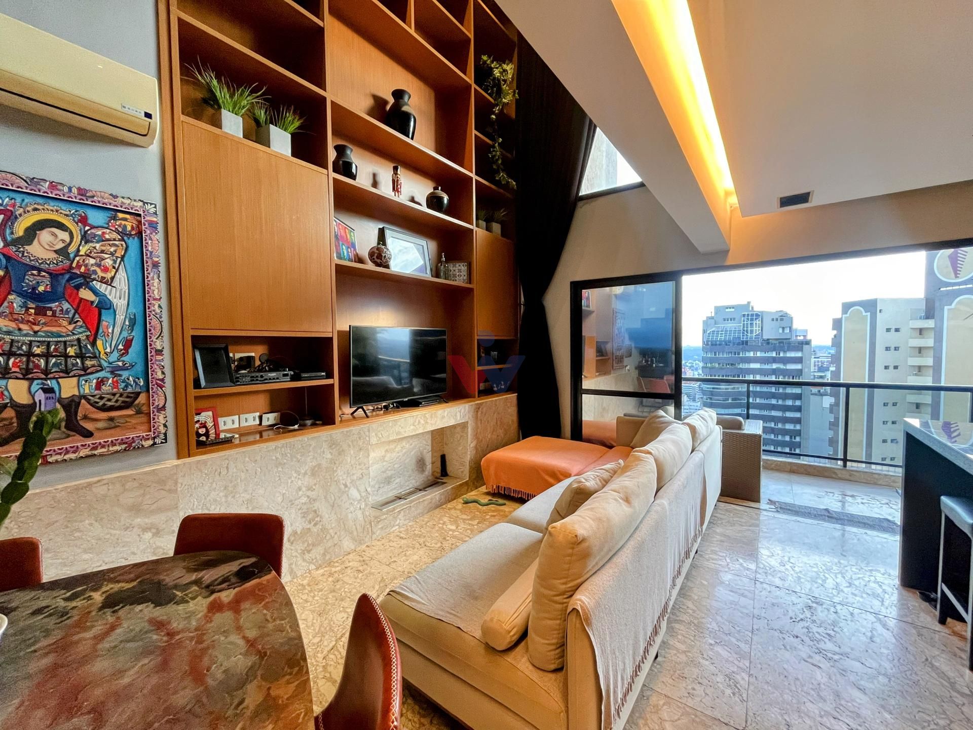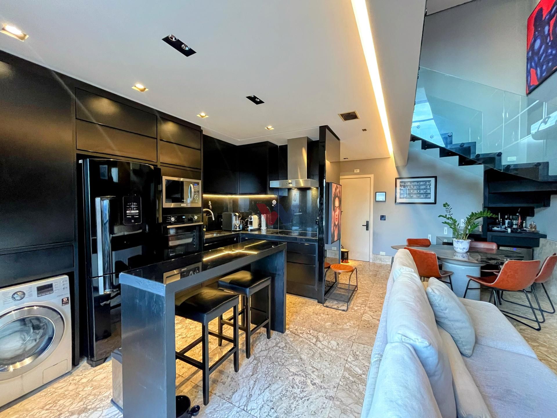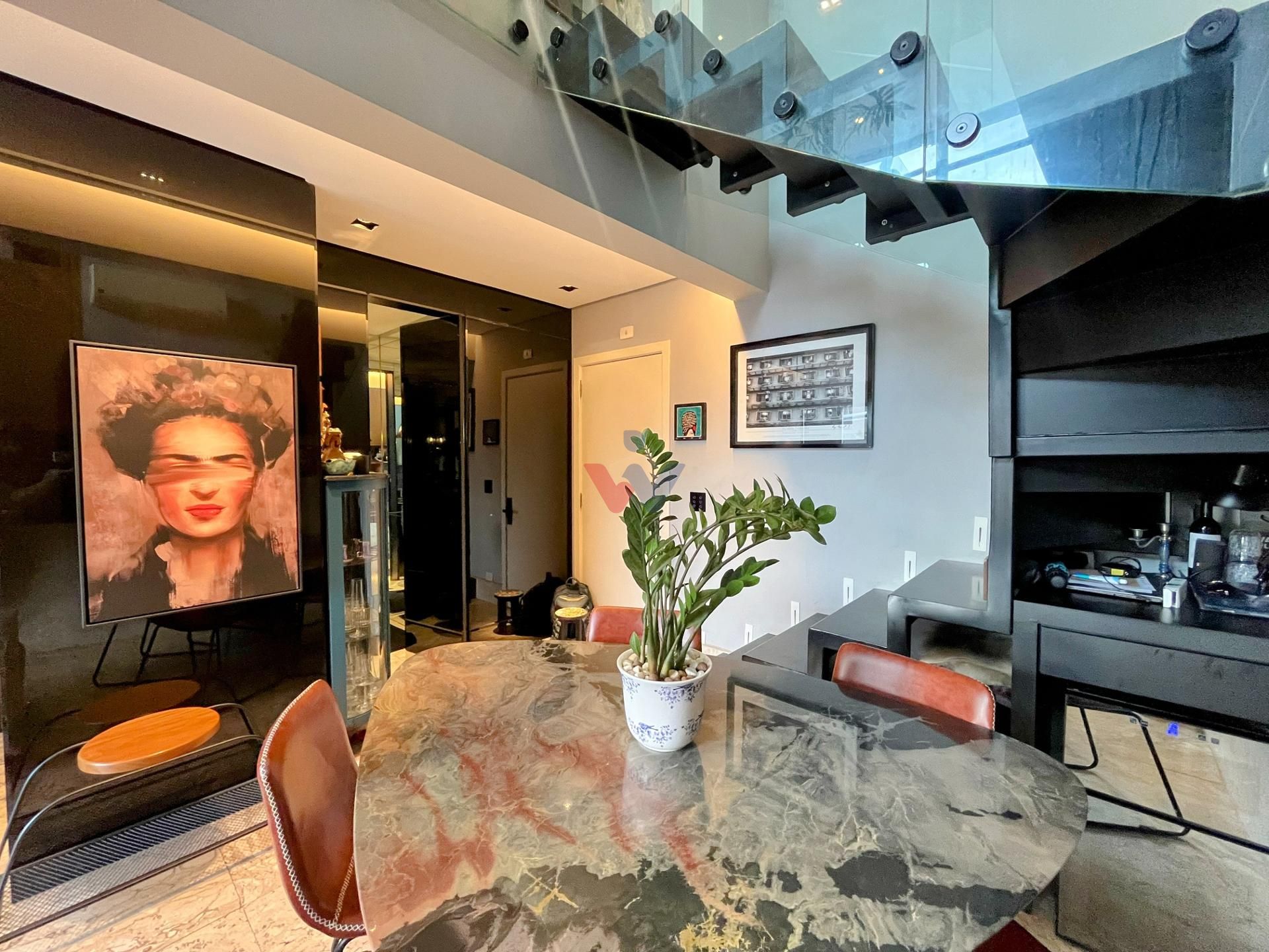 O loft se destaca pela altura generosa de seu pé direito duplo, espaços fluidos e uma sacada ampla com churrasqueira a carvão e vista panorâmica. No mezanino, a suíte espaçosa oferece privacidade e sofisticação, enquanto o acabamento de alta qualidade traz um toque especial: madeira nobre no mezanino e mármore no térreo.