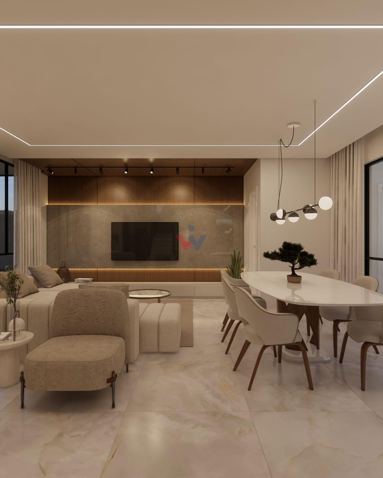 Sala de estar integrada à sala de jantar, proporcionando amplitude e convivência;