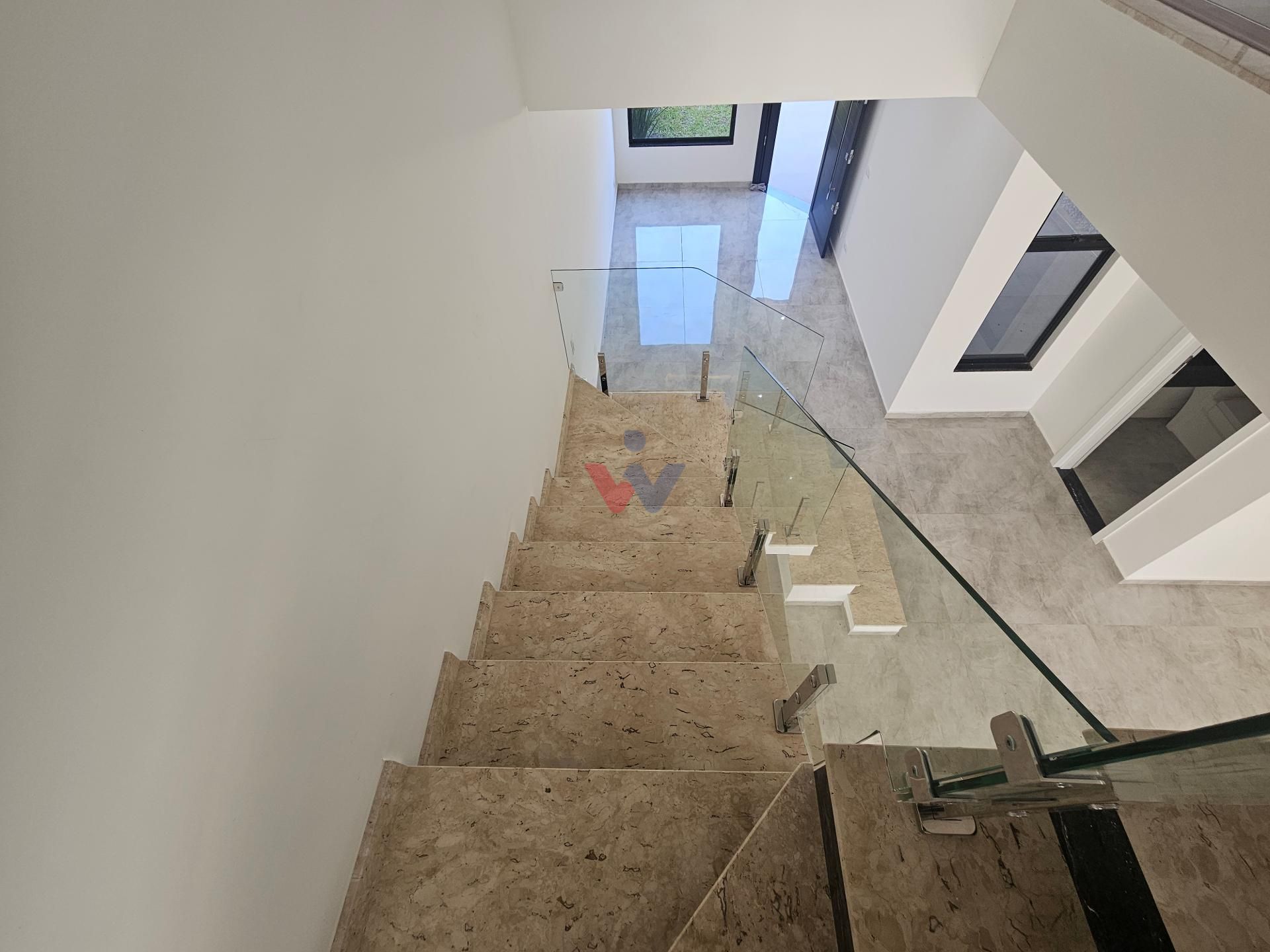 Escada de Granito com corrimão de vidro.