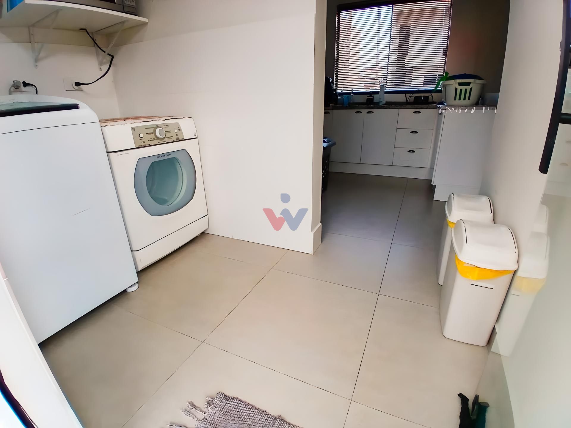 Lavabo com janela e lavanderia coberta e fechada, com tomadas 110v e 220v.