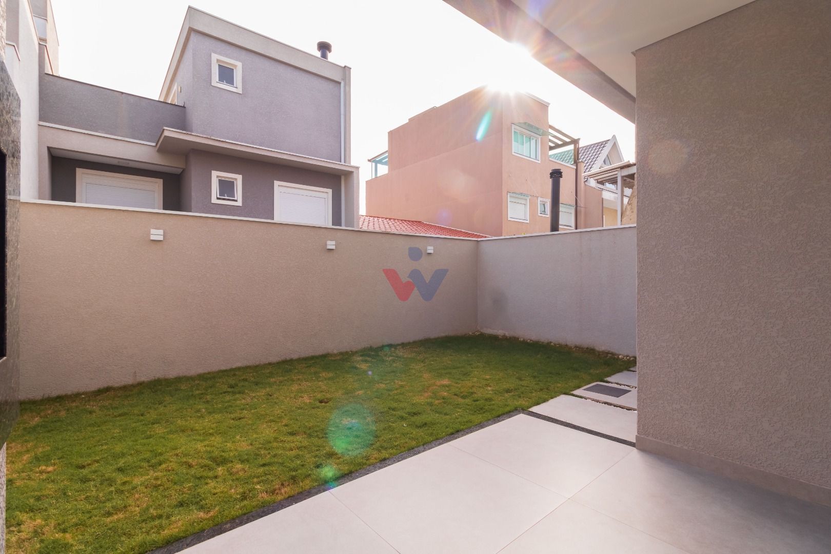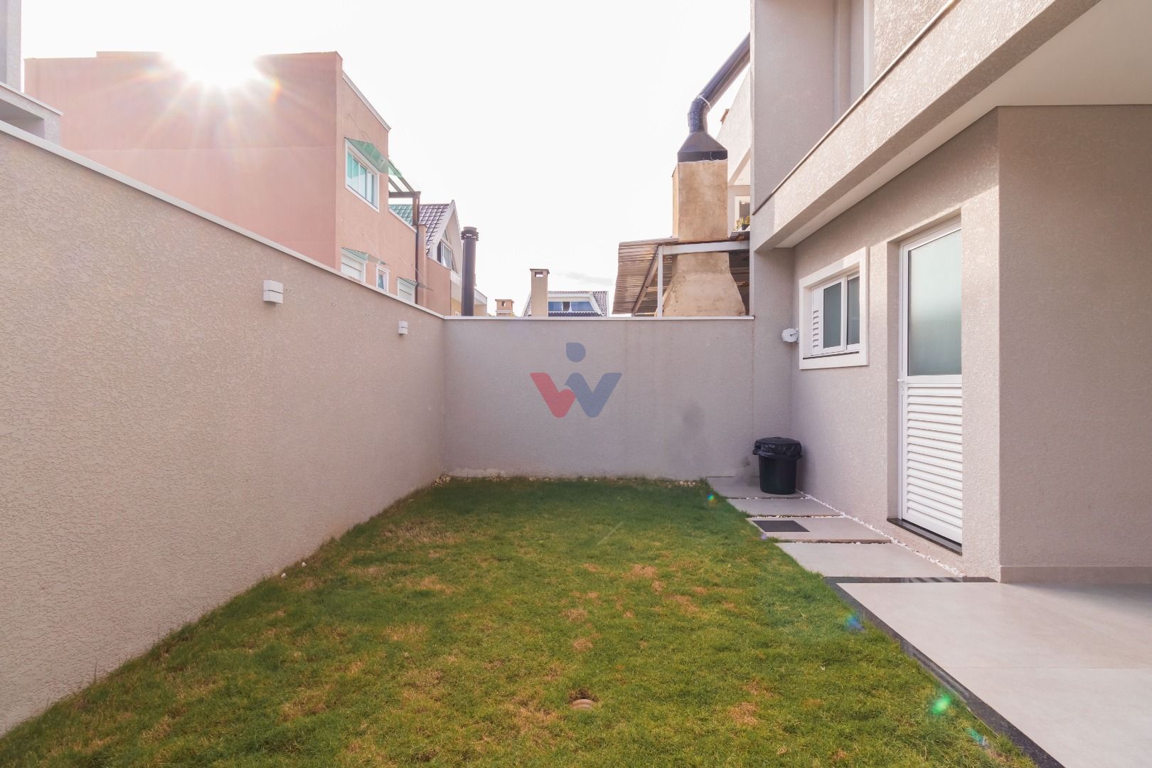 Quintal amplo com sol e espaço gramado para lazer