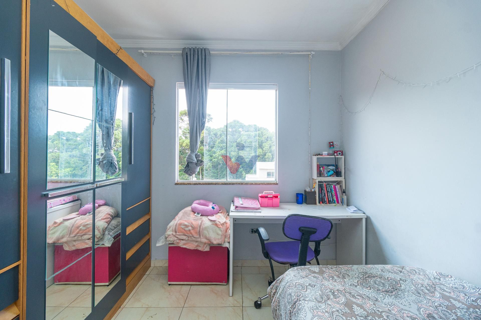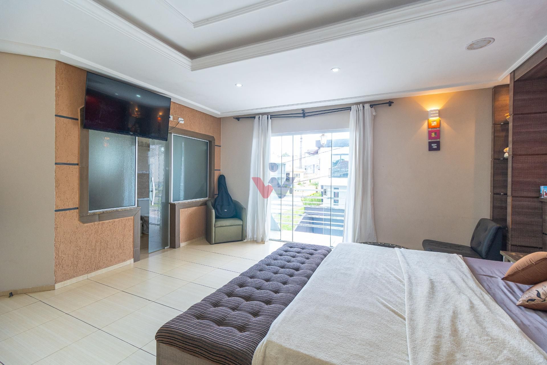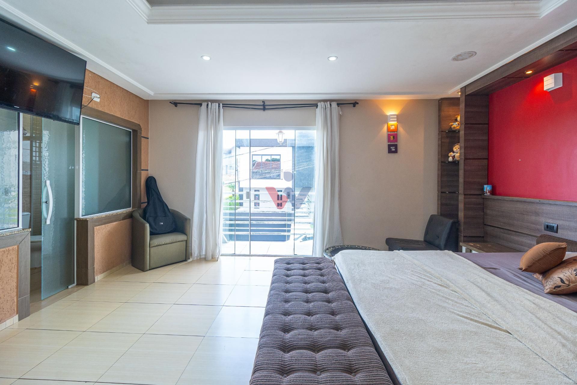 O imóvel conta com quatro quartos, incluindo uma suíte ampla que se destaca pelo conforto e atenção aos detalhes. A suíte master oferece uma experiência diferenciada, com cama king artesanal com colchão, espelhos planejados em ambos os lados, baú aos pés da cama, ar-condicionado, closet espaçoso e um banheiro preparado para receber banheira dupla, com pia oval e box em vidro até o teto.