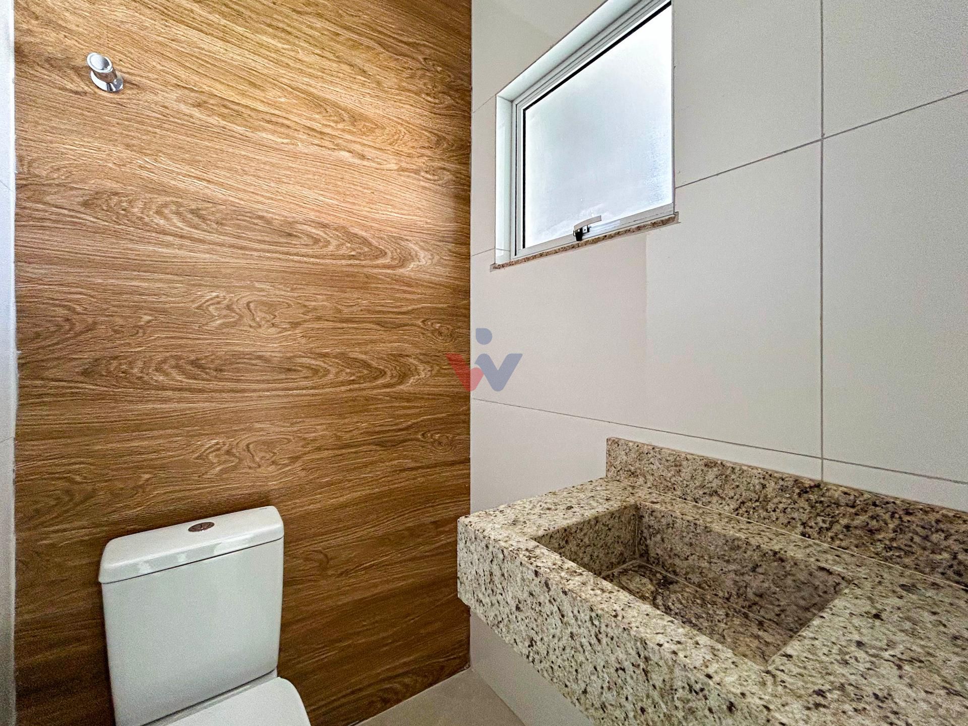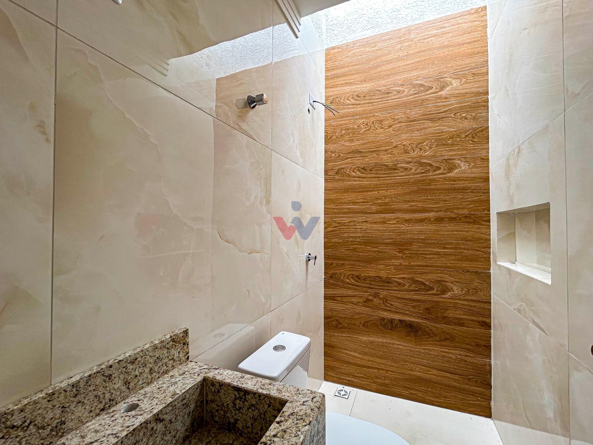 Banheiro social com pia em granito e nicho