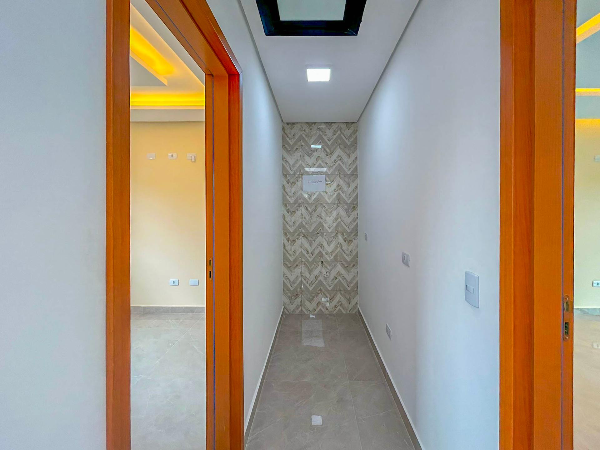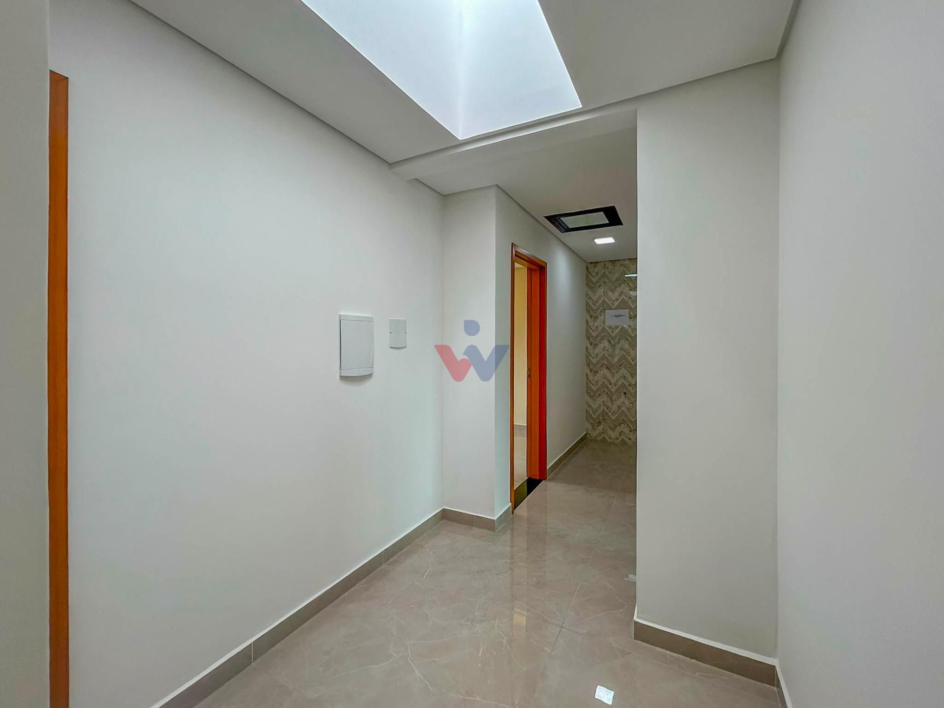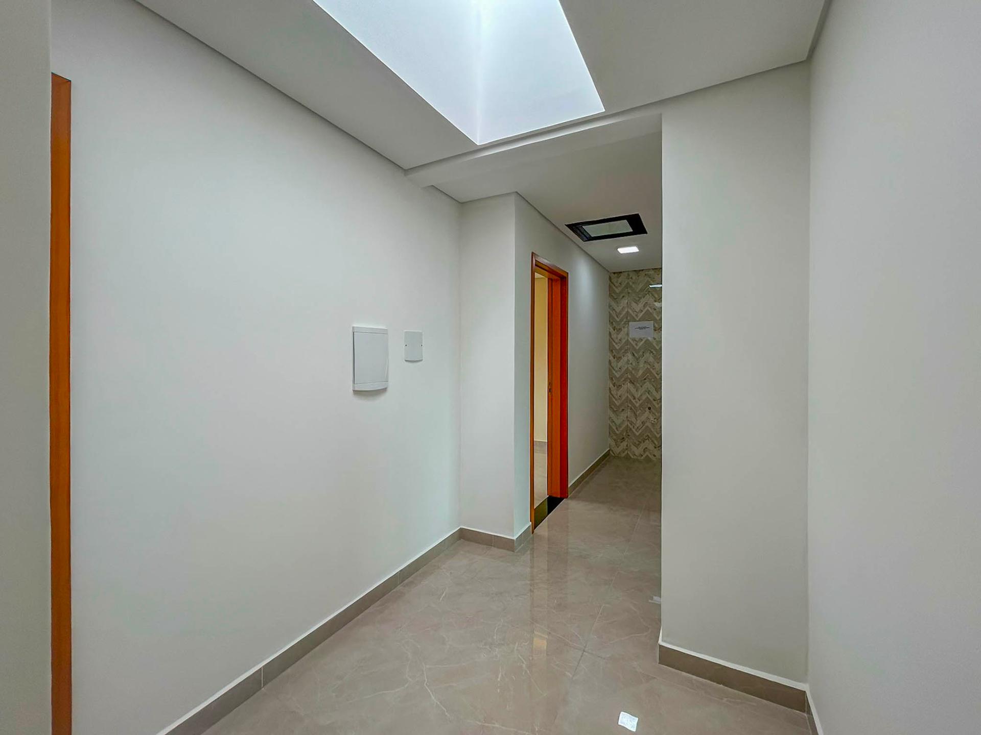 Claraboia no corredor íntimo, garantindo iluminação natural