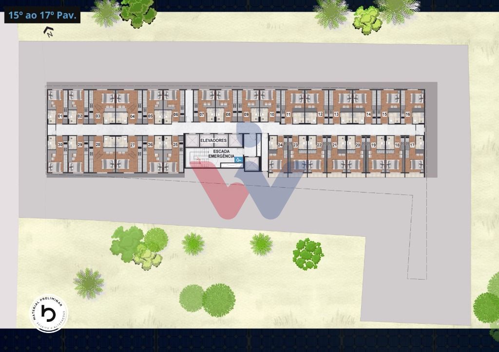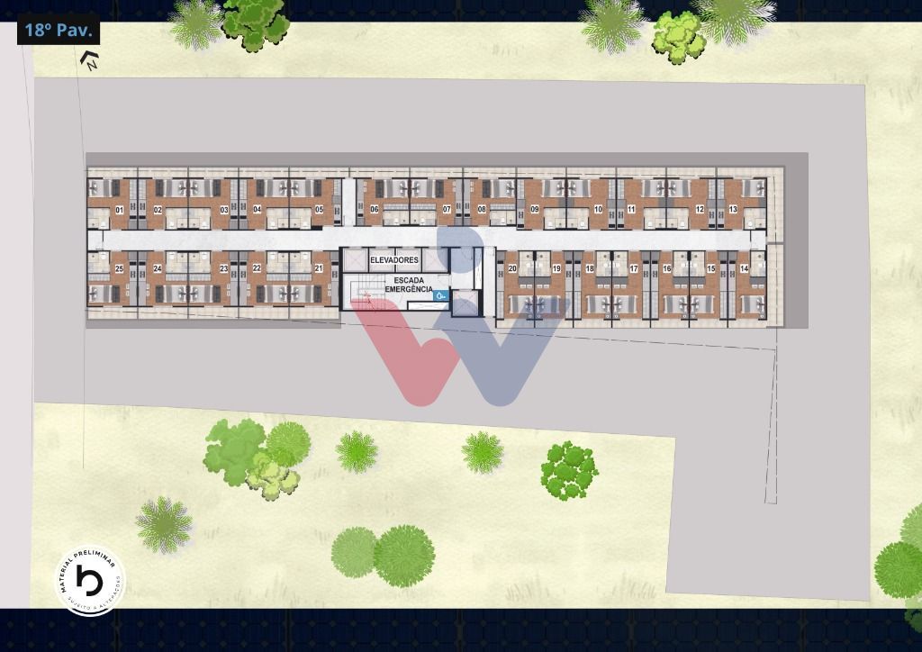 TÉRREO: LojaHall Área ComercialHall ResidencialVagas residenciais, 2º e 3º PAV.:Vagas Residenciais -Loja 02 e 03 Bike Park Estacionamento residencial, 4º PAV.: Academia/Coworking/Pet Place/Lavanderia by OMO/Cozinha Compartilhada/Vestiários/Recreação Descoberta/Terraço Gourmet/Churrasqueiras/Sala de Jogos/LoungeHorta; 5º ao 20º PAV.:Studios opcional sacada , 20º PAV.Piscina com Borda Infinita/Solarium/Coberturas duplex