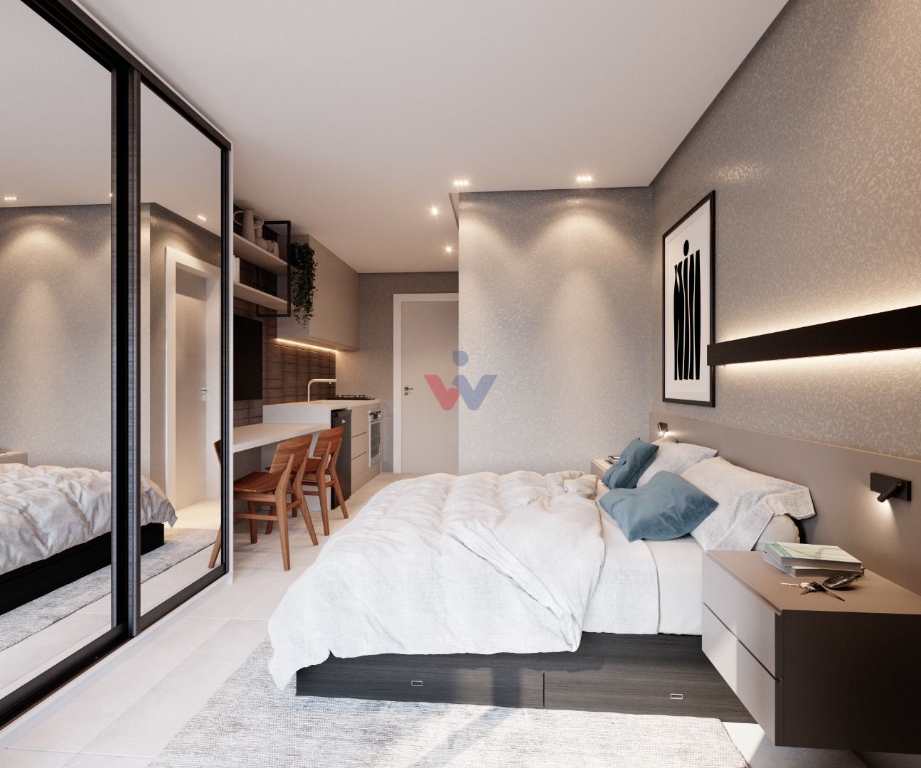 Studios: 95 unidades de 19,50 m² a 26,73 m² privativos, ideais para quem valoriza funcionalidade e praticidade.