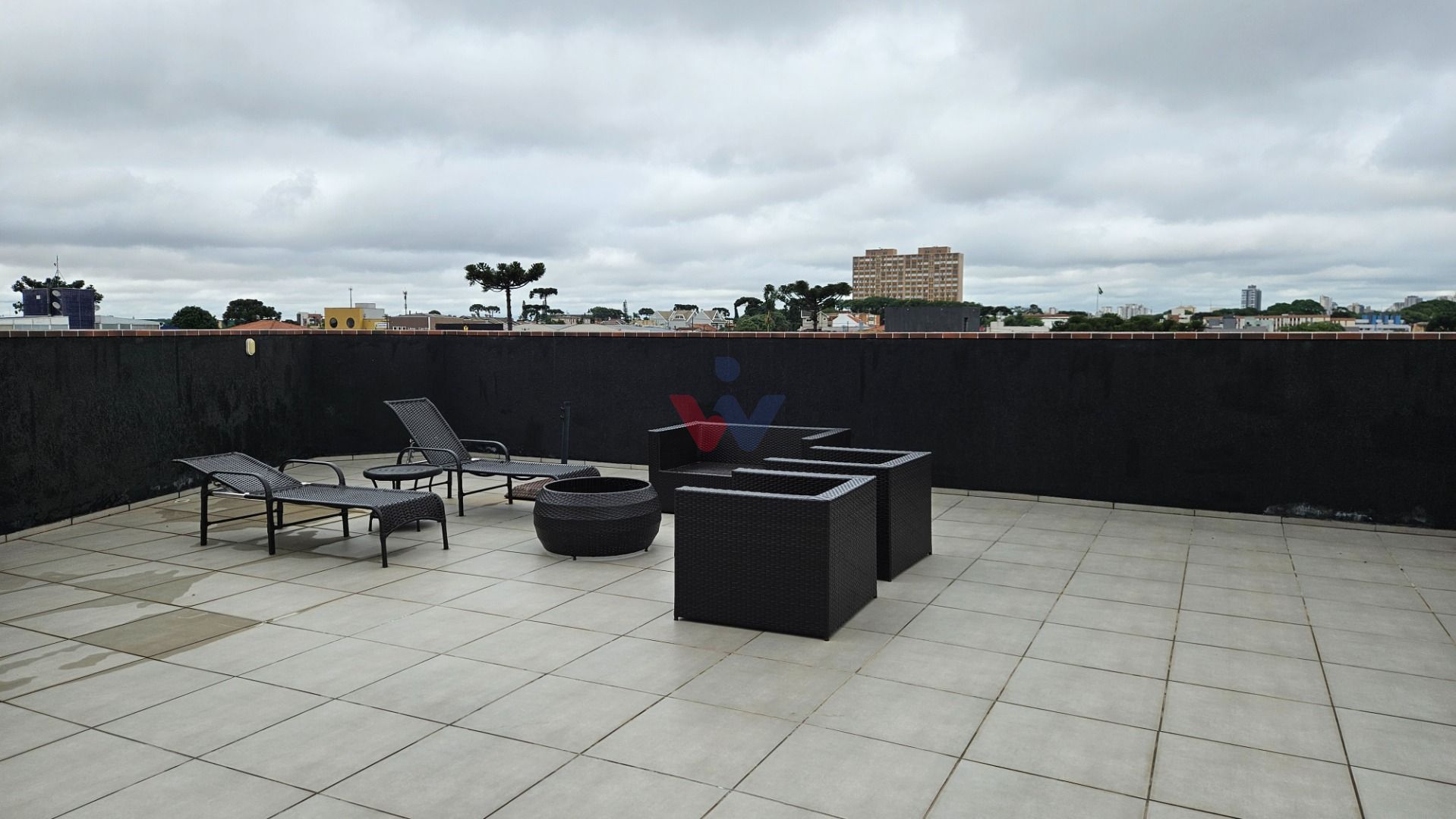 O condomínio oferece lavanderia no térreo, academia e espaço comum no terraço com vista panorâmica da cidade, além de elevador e portaria remota.