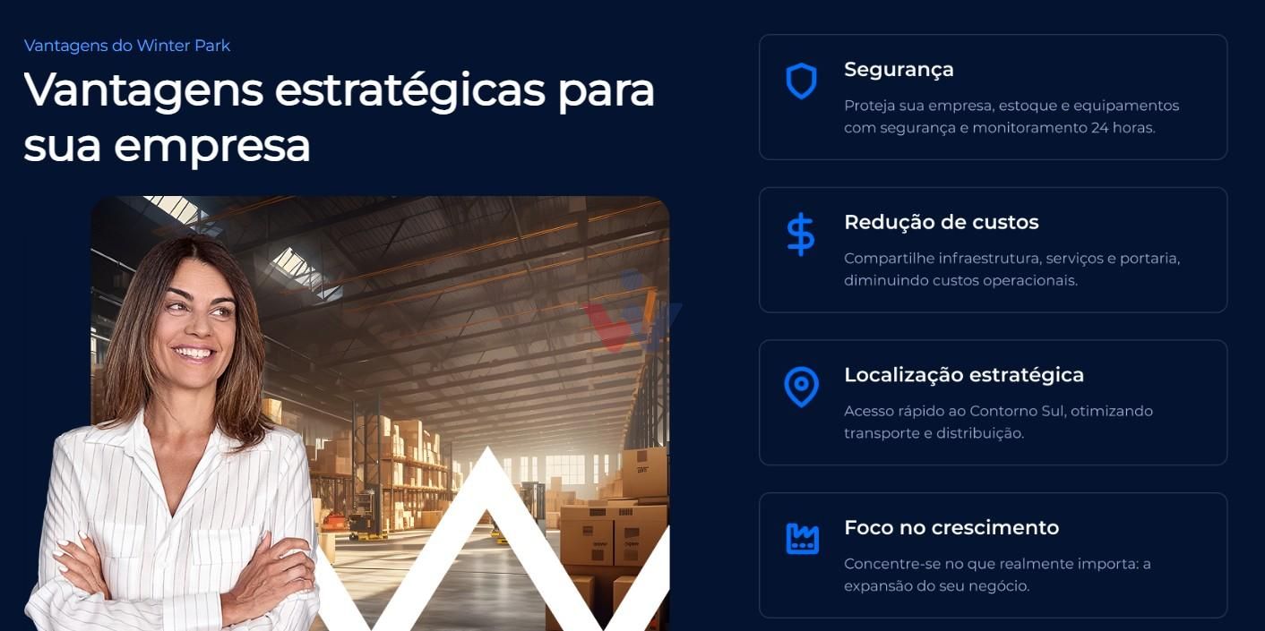 Localizado na Rua Vicente Micheloto, nº 4630, na Cidade Industrial de Curitiba, o Winter Park Empresarial oferece fácil acesso às principais vias da cidade e corredores logísticos, facilitando o deslocamento de cargas, colaboradores e fornecedores. O zoneamento ZS 1.1 permite Indústrias Tipo 1 e Tipo 2, com altura máxima de galpões de até 15 metros e capacidade de tráfego de até 17 toneladas por eixo, atendendo plenamente operações que demandam circulação de veículos pesados.