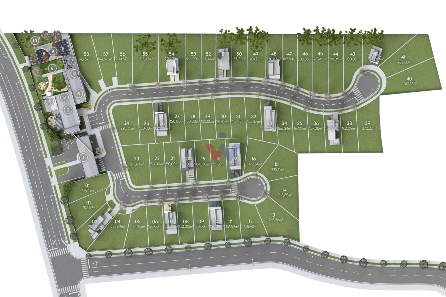 58 lotes entre 150 m² e 317 m²