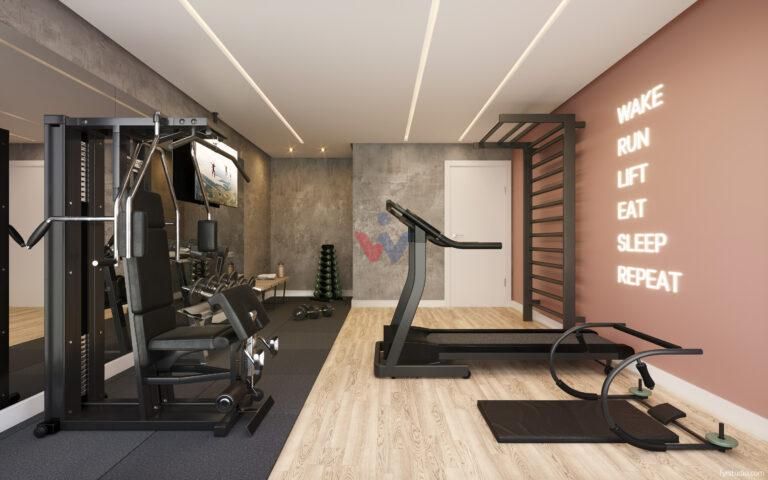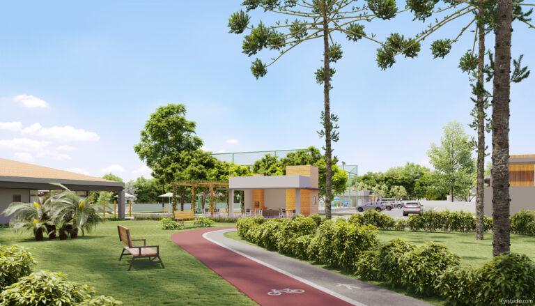 Esporte e Saúde: Academia coberta, academia ao ar livre, quadra poliesportiva e pista de caminhada.